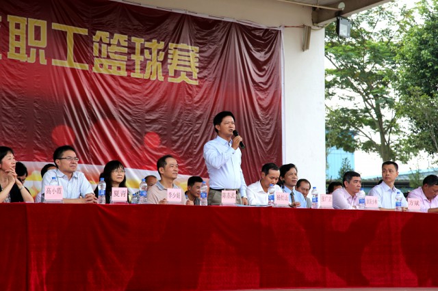 (省人社厅杨红山副厅长宣布第二届教职工篮球比赛开幕)