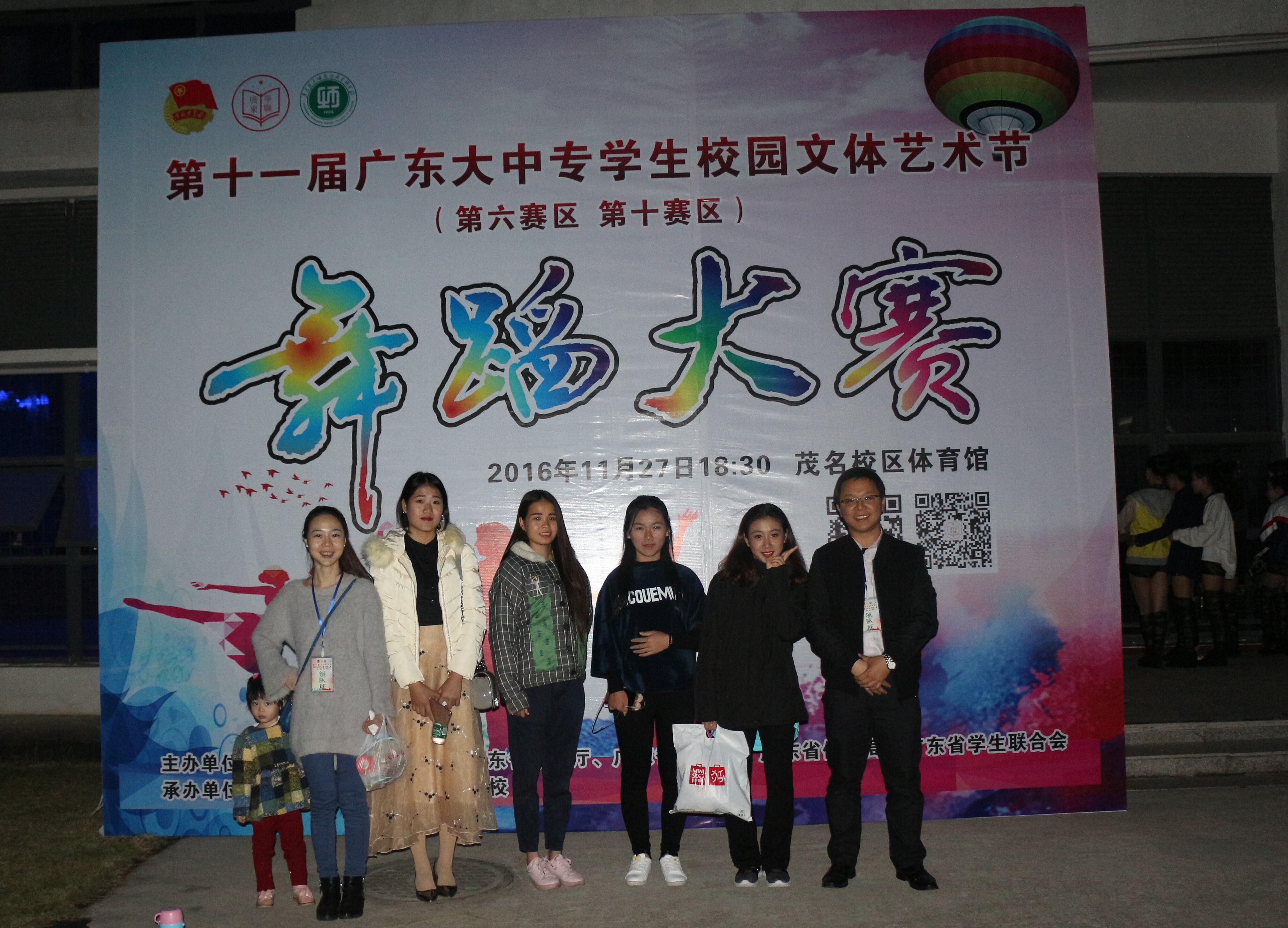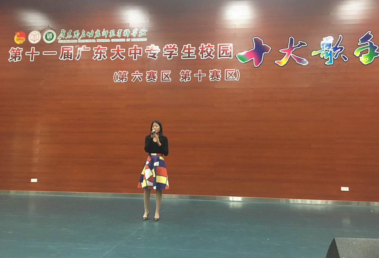 为进一步发挥校园文化体育活动的育人塑人功能,促进校园舞蹈艺术教育方式与方法的改革和创新,展现学生积极向上、奋斗成才的精神风貌,近日,共青团广东省委员会、广东省教育厅、广东省文化厅、广东省体育局、广东省学生联合会联合举办了第十一届广东大中专学生十大歌手、舞蹈大赛。我校基础教育系的徐源笙、高级部幼师专业的吴翠莹两位同学分别参加了十大歌手、舞蹈大赛,11月27日,在学校团委莫喜华、谢佩珊等老师的带领下,徐源笙、吴翠莹两位同学参加了在广东茂名幼儿师范专科学校(第十赛区)举行的复赛。
