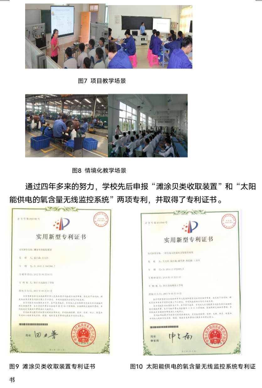 我校通过搭建漆艺研究、设计专家与生产企业对接的平台,创新特色工艺传承人才培养的新途径,尝试破解阳江漆艺人才青黄不接的难题;通过推进产学研合作,开发滩涂贝类收取装置和太阳能供电的氧含量监控系统,实现以研促教和以研促改提升学校的专业建设水平和服务经济发展能力。
