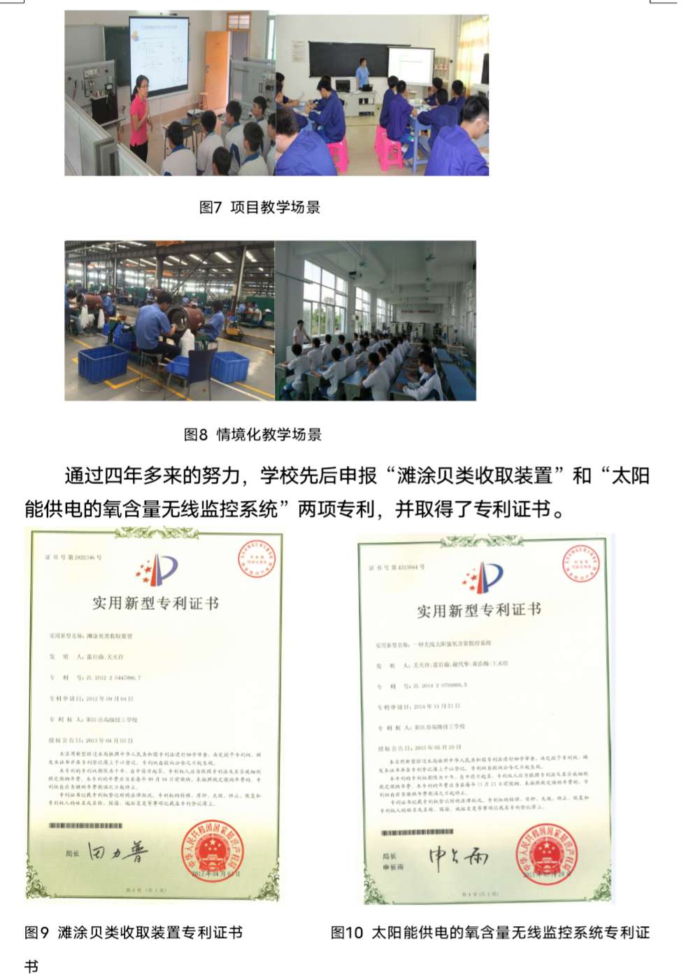 我校通过搭建漆艺研究、设计专家与生产企业对接的平台,创新特色工艺传承人才培养的新途径,尝试破解阳江漆艺人才青黄不接的难题;通过推进产学研合作,开发滩涂贝类收取装置和太阳能供电的氧含量监控系统,实现以研促教和以研促改提升学校的专业建设水平和服务经济发展能力。