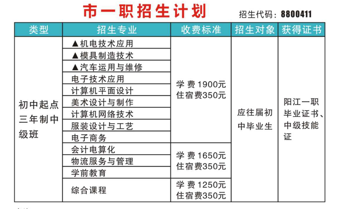 阳江技师学院、阳江市第一职业技术学校2016年秋季招生简章
